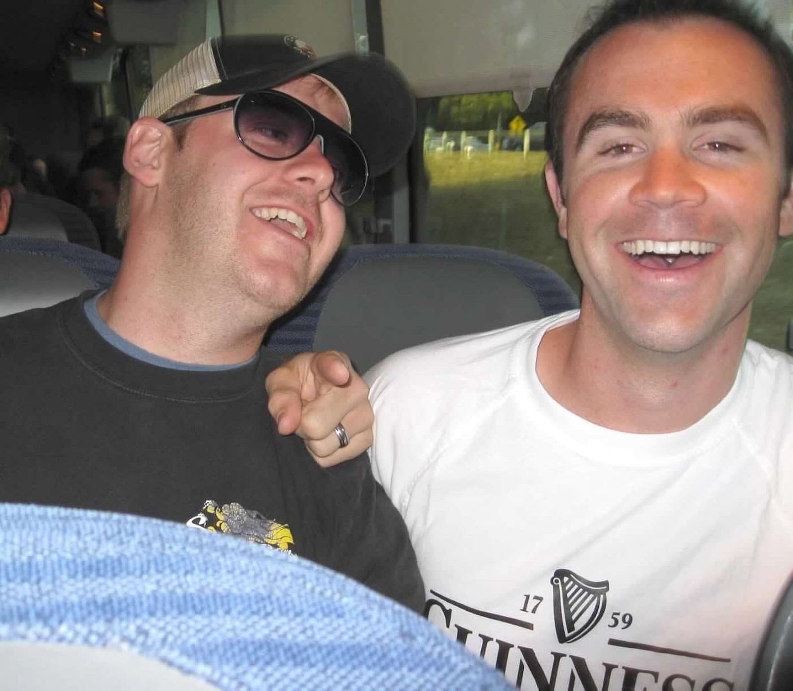 Trevor and Matt Laughing on Bus to Game