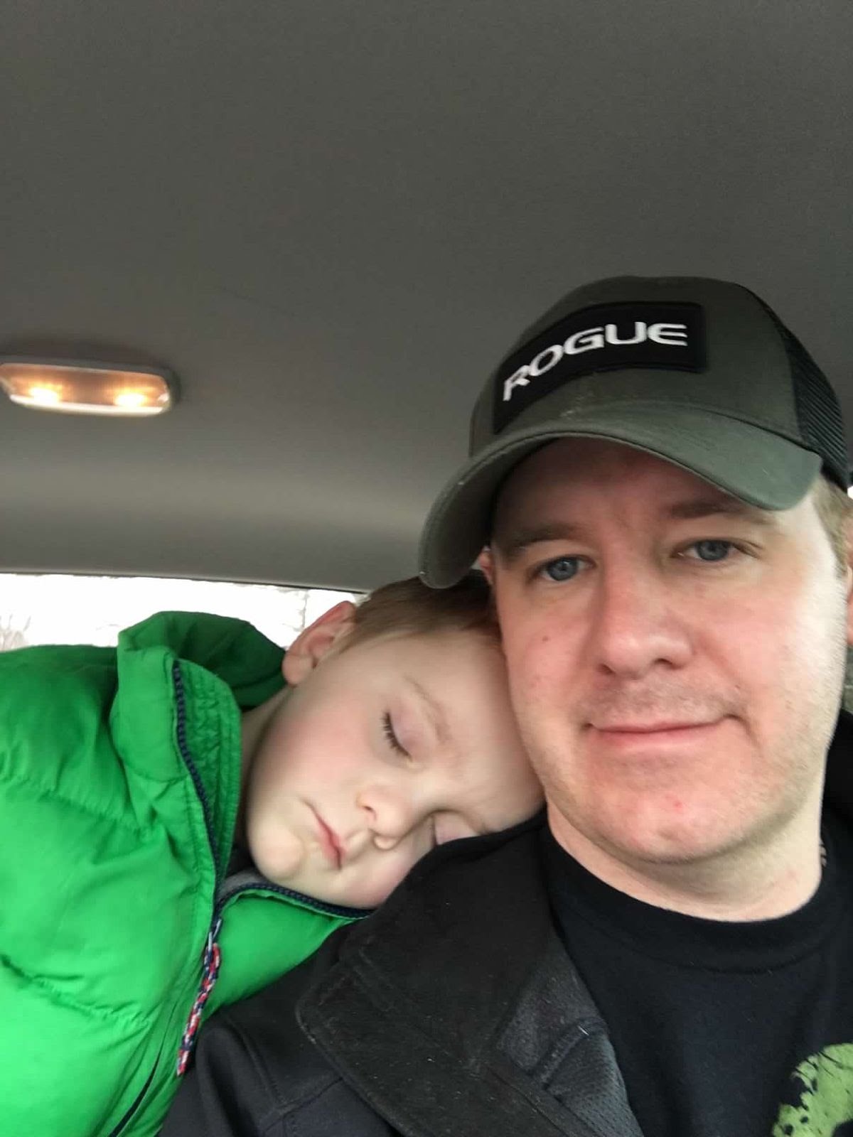 Tucker asleep on shoulder
